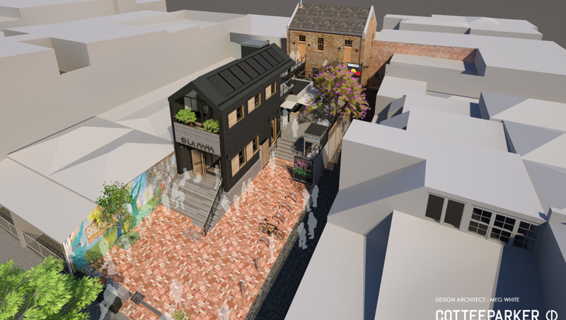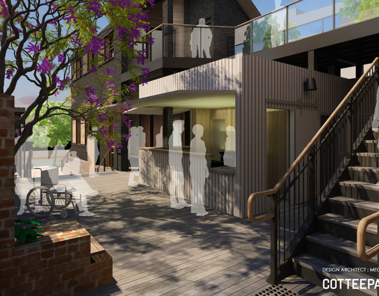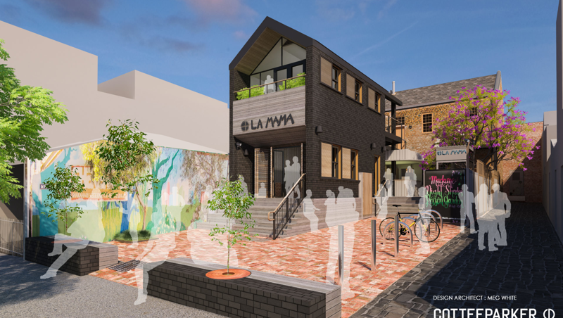 Like old La Mama, the design of new La Mama is simple and restrained. Ornamentation is only in the functional. The theatre is in the every-day, the opening of the fence, the doors and the window shutters. The architecture aims to respect and support the multitude of daily activities of this little village with nooks for reading scripts, couches for conversations and cake, a dedicated office for the enablement of art, a rehearsal hub for the creation of art, undercover areas for rain-soaked patrons, troughs for washing paint brushes, a platform for announcements, and lifts for including everyone.